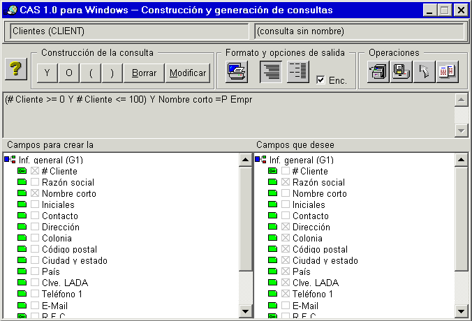 de los campos contenidos en el archivo CLIENT de la base de datos. El usuario
