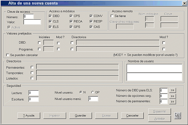 A través del módulo CPS el administrador del sistema puede asignar y cambiar cuentas y