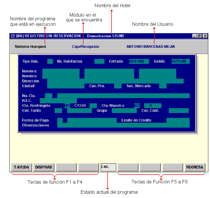 • Nombre del Programa: El nombre del programa le indica el programa que esta ejecutando en ese momento. Para este ejemplo Registro sin Reservación.