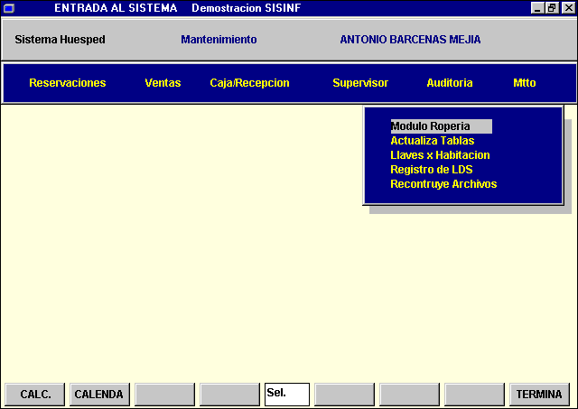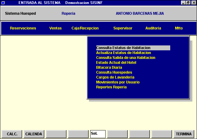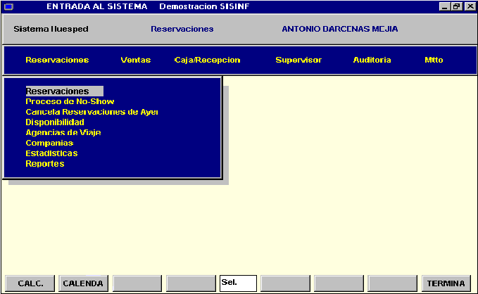 • Nombre del Hotel: Aquí se despliega el nombre de su hotel. Para este ejemplo Demostración SISINF.