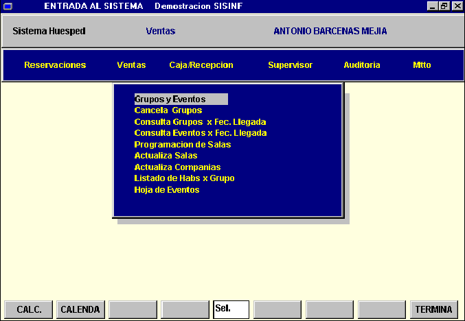 • Grupos y Eventos: En esta opción se registra, consulta y actualiza la información de los grupos que va a recibir el hotel, además permite registrar información del evento en caso de tenerlo, reservar habitaciones para el grupo, así como el manejo del "rooming list". Además se cuenta con la opción de configurar la cuenta del grupo.