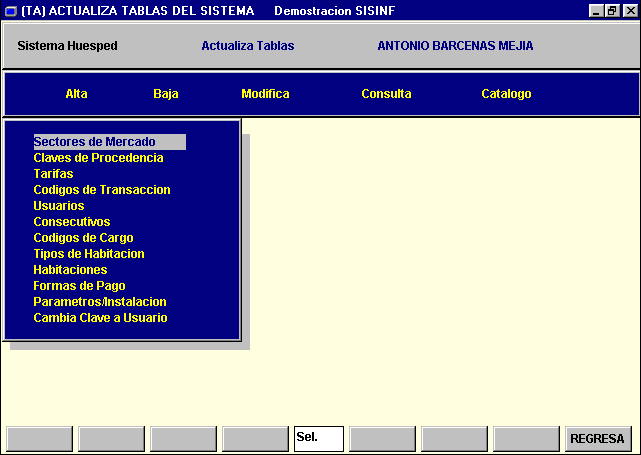 Este módulo no es de uso frecuente, se utiliza sobre todo al momento de la instalación del sistema y cuando cambia información como las tarifas del hotel, o parámetros como nuevos sectores de mercado o claves de procedencia.